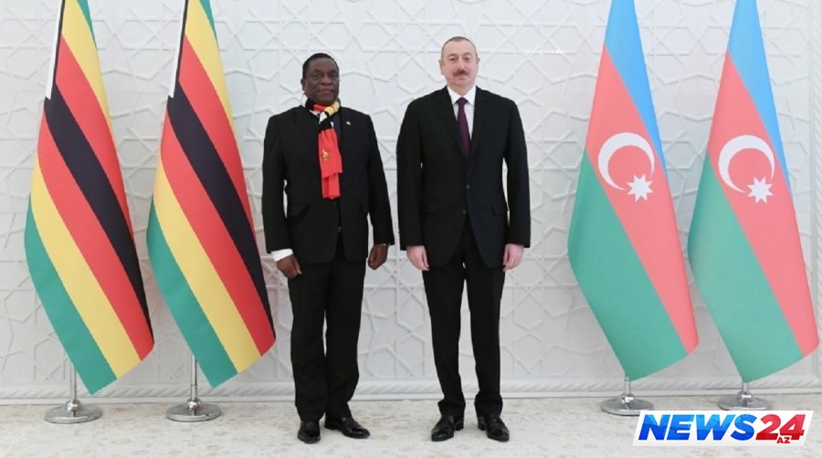 Dövlət başçısı Zimbabve Prezidentini qarşılayıb. Sonra birgə foto çəkdirilib.