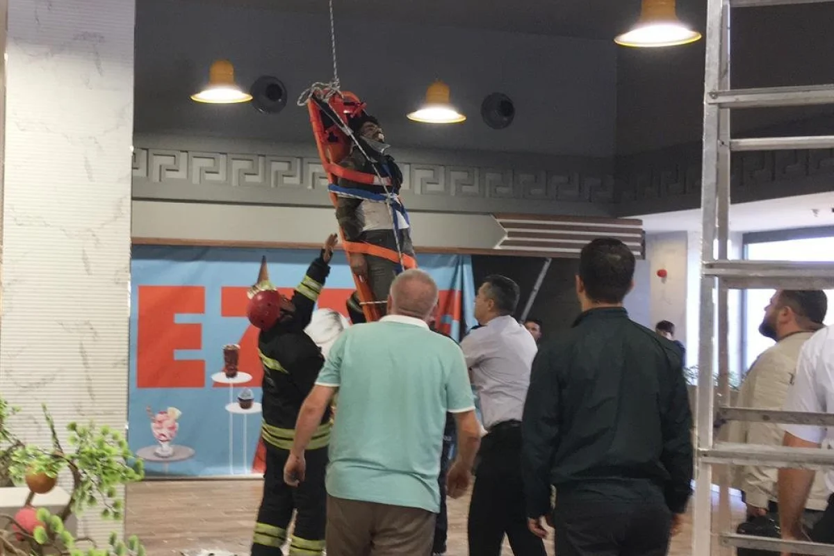 Plazanın ən üst mərtəbəsinə qalxan 23 yaşlı gənc özünü aşağı atıb. Xoşbəxtlikdən ticarət mərkəzinin yemək bölümünə düşən oğlan ölməyib. O, tavandan asılı vəziyyətdə qalıb.