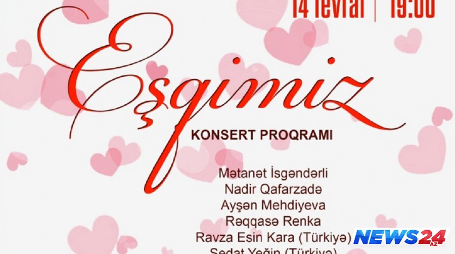 News24.az xəbər verir ki, 14 fevral Sevgililər Gününə təsadüf edəcək “Eşqimiz” adlı konsert 19:00-da start götürəcək.