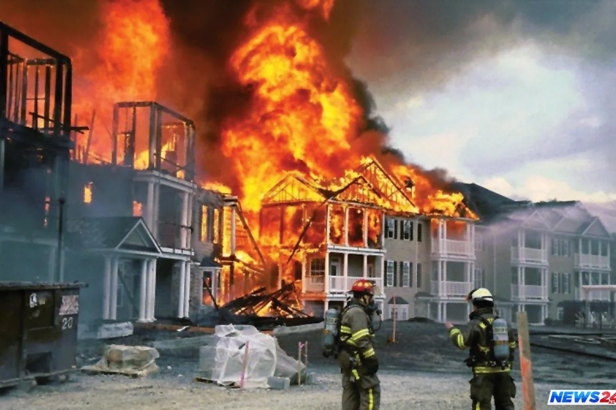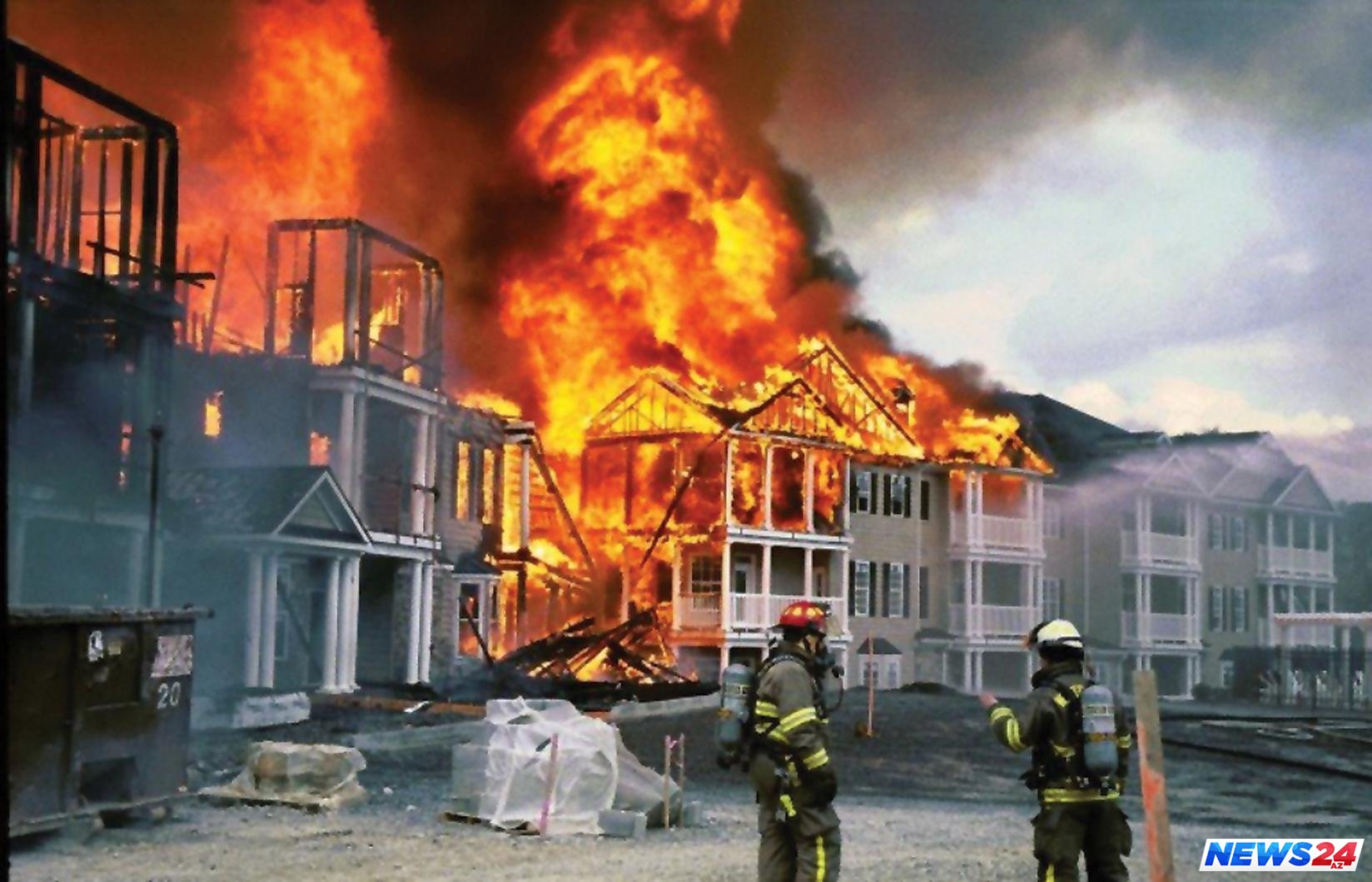 Yanğının söndürülməsi üçün gərgin iş gedir.