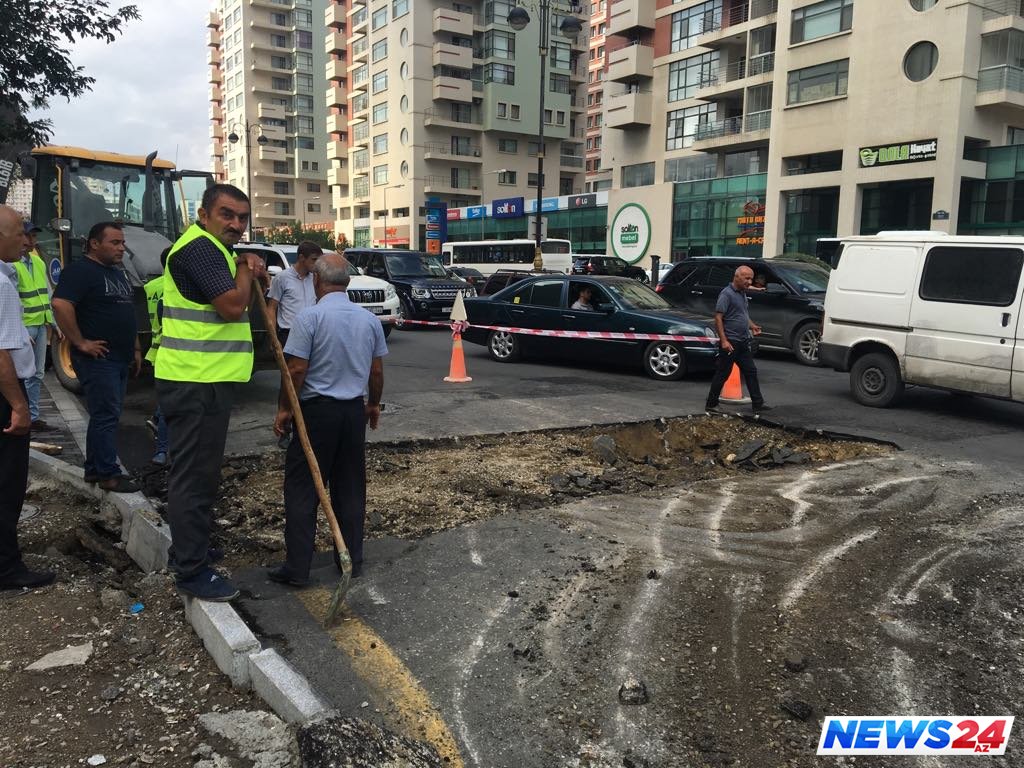 Bakıda daha bir yol çökdü - Fotolar