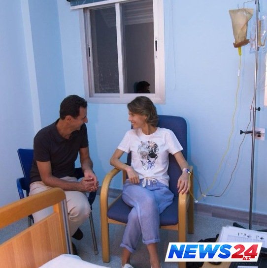 Əsma Əsəd və Bəşər Əsədin xəstəxanada birlikdə çəkilən fotosu paylaşılaraq aşağıdakı qeydlər yazılıb:
