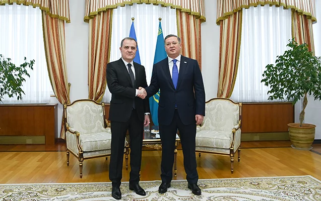 Azərbaycanın xarici işlər naziri Ceyhun Bayramov Qazaxıstanlı həmkarı Murat Nurtleu ilə görüşüb.