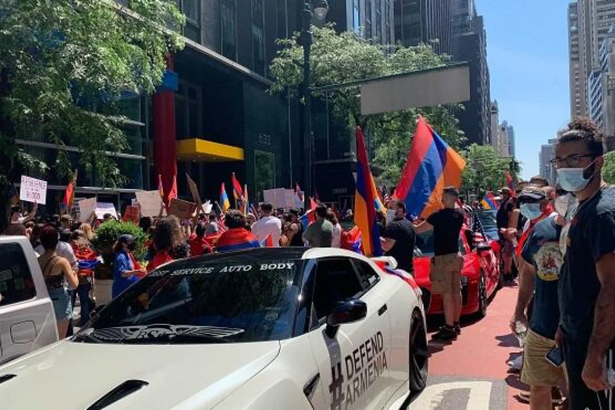 Ermənilər aksiya zamanı Azərbaycan əleyhinə şüarlar səsləndiriblər.//axar.az