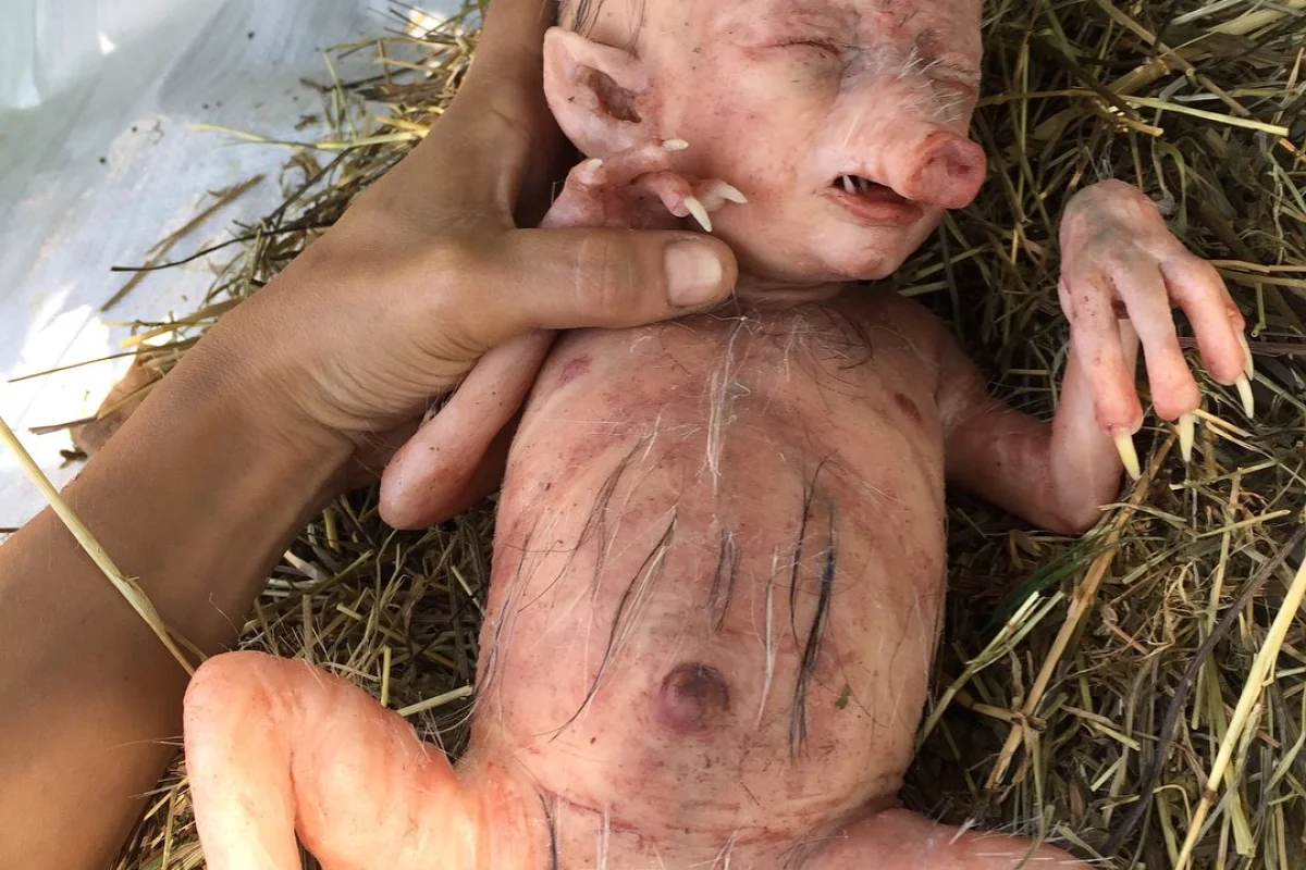 News24.az xəbər verir ki, o şəkilləri paylaşan şəxs “Əlim ayağım titrəyir” deyərək insanları inandırmışdı. Amma, həmin fotonun sosial şəbəkələrdə paylaşan italiyalı sənətkarın silikondan hazırladığı ortaya çıxıb. Şəkildə olan donuz- insan Laira Maganuconun hazırladığı “Hibrit donuz uşaq” adlı heykəlcikdir.