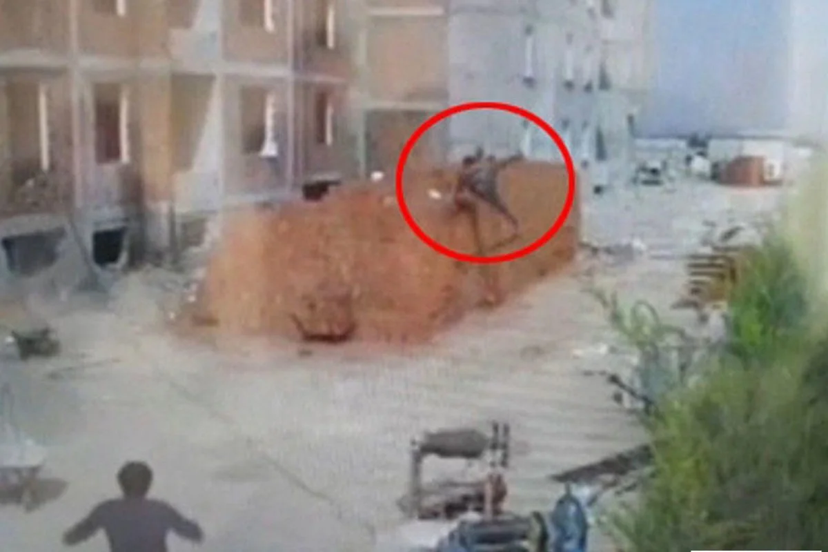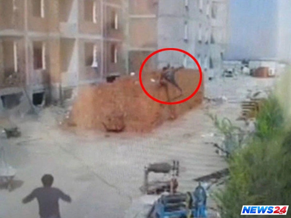 Fəhlənin yıxılma anı təhlükəsizlik kamerası tərəfindən anbaan qeydə alınıb.