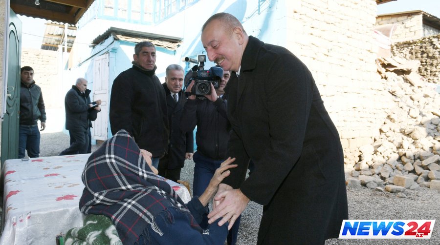 Prezident İlham Əliyev zəlzələdən zərərçəkən tikililərə baxıb, sakinlərlə söhbət edib.