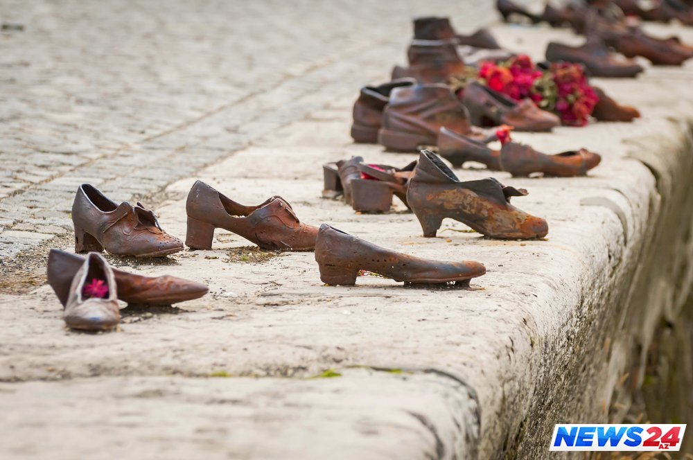 II Dünya Müharibəsi illərində Dunay çayı sahilində faşistlər tərəfindən güllələnmiş yəhudilərin xatirəsi bu şəkildə əbədiləşdirilib.