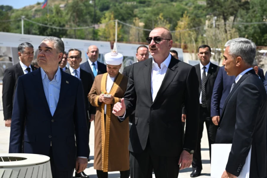 Azərbaycan Respublikasının Prezidenti İlham Əliyev və Türkmənistan Xalq Məsləhətinin sədri Qurbanqulu Berdiməhəmmədov iyulun 17-də Yeni Şuşa məscidində tikinti işlərinin gedişi ilə tanış olublar.