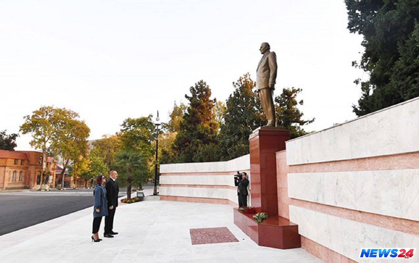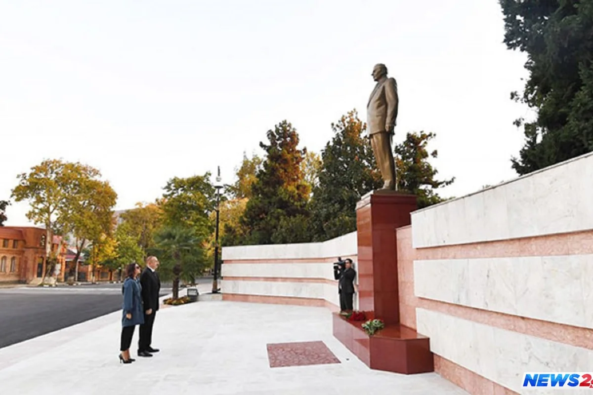 İlham Əliyev və birinci xanım Mehriban Əliyeva ümummilli lider Heydər Əliyevin Şəki şəhərindəki abidəsi önünə gül dəstələri qoyublar.