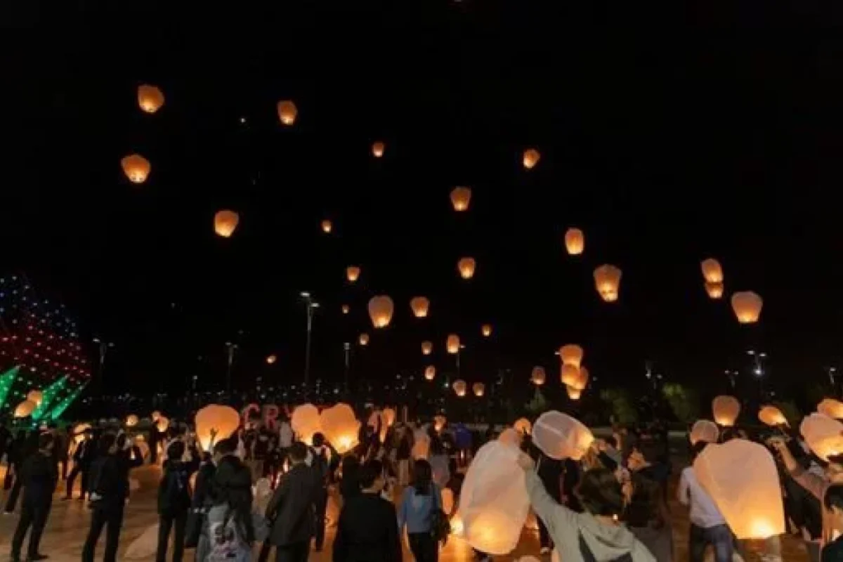 News24.az xəbər verir ki, aksiyada RİİB könüllülərinin, şəhid övladları və gənclərin iştirakı ilə səmaya işıq fənərləri buraxılıb.