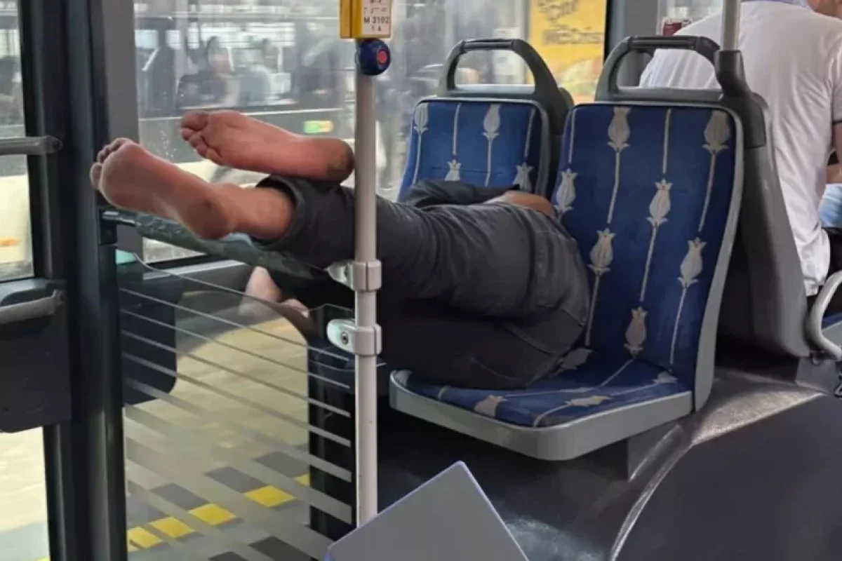 İstanbulda metrobusda olan sərnişinin başmaqlarını çıxarıb yalın ayaqlarını yanındakı oturacağa uzataraq yatmağa çalışması digər sərnişinlərin qəzəbinə səbəb olub.