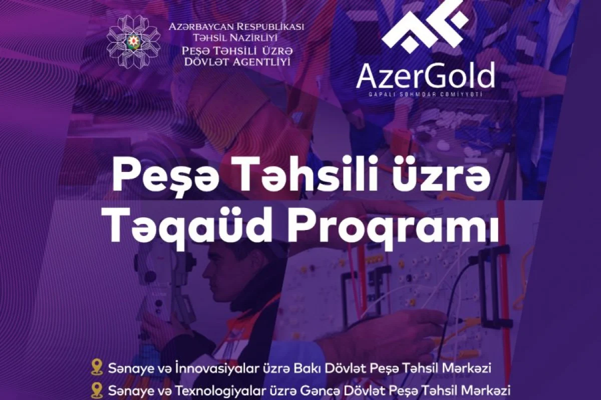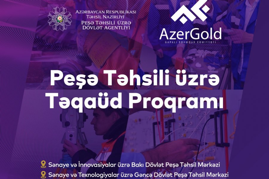 “AzerGold” Qapalı Səhmdar Cəmiyyəti (QSC) və Peşə Təhsili üzrə Dövlət Agentliyi arasında təsdiq olunmuş Fəaliyyət Planına uyğun olaraq peşə təhsili müəssisələrində sənaye və dağ-mədən istiqaməti üzrə təhsil alan tələbələr üçün “Təqaüd proqramı” layihəsinin icrasına başlanılır.