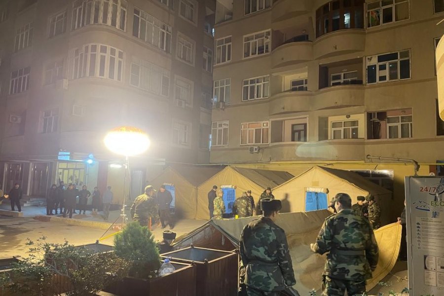 Bakı şəhəri, Binəqədi rayonu, Cavadxan küçəsində yerləşən çoxmərtəbəli yaşayış binasında baş vermiş partlayışla əlaqədar binaya qazın verilişinin müvəqqəti dayandırılması səbəbindən bina sakinlərinin gecələməsi üçün Fövqəladə Hallar Nazirliyinin Mülki müdafiə qoşunları tərəfindən ərazidə çadırlar qurulub.