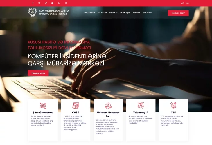 News24.az xəbər verir ki, CERT-in tərkibində fəaliyyət göstərən kiberəməliyyatlar mərkəzi (SOC) vasitəsilə dövlət qurumlarında informasiya təhlükəsizliyi 24/7 monitorinq edilir, dövlət informasiya sistem və ehtiyatlarında informasiya təhlükəsizliyi auditləri aparılır və "GOV.az" domen zonası üzrə inzibatçı funksiyası icra edilir.