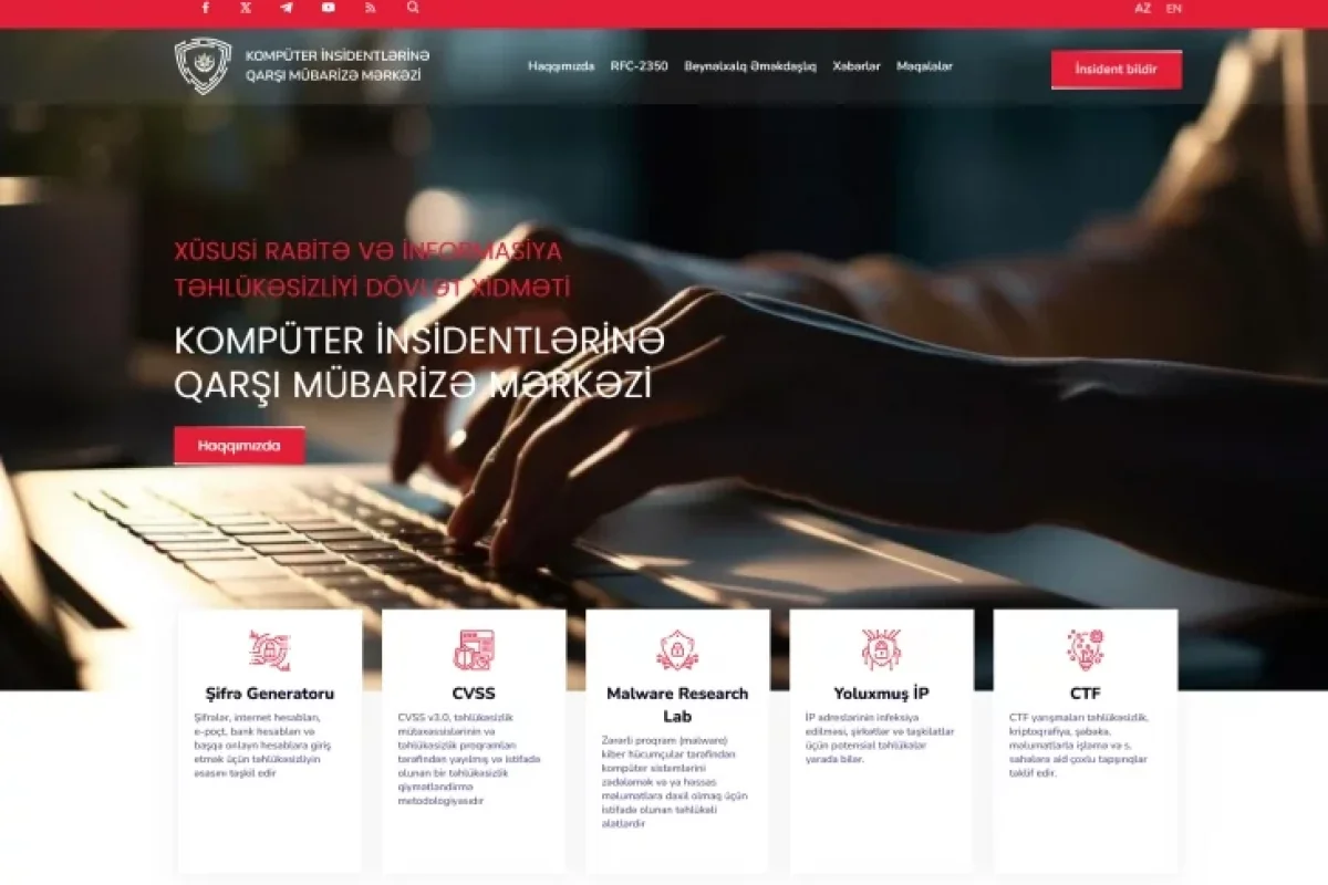 Xüsusi Rabitə və İnformasiya Təhlükəsizliyi Dövlət Xidməti (XRİTDX) Kompüter İnsidentlərinə Qarşı Mübarizə Mərkəzinin yenilənmiş elekton informasiya ehtiyatı istifadəyə verilmişdir. 2008-ci ilin 20 aprel tarixində fəaliyyətə başlamış Mərkəzin vəzifəsi dövlət qurumlarında baş vermiş kiberinsidentləri araşdırmaq, təhlil etmək və qarşısını almaqdan ibarətdir.