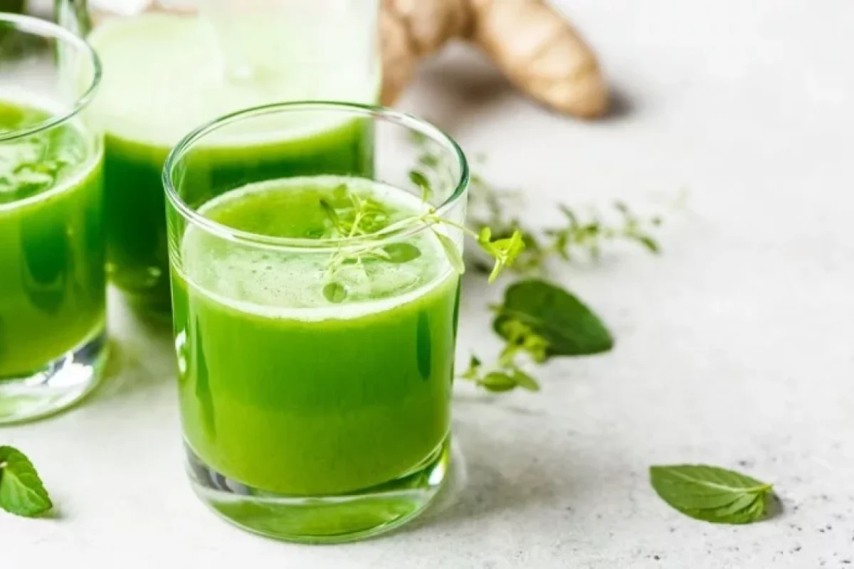 Ərzaqlar: 1 fincan su, 1 x.q limon şirəsi, yarım kivi, yarım dəstə spanaq, yarım dəstə təzə nanə yarpaqları, yarım ç.q xırda doğranmış təzə zəncəfil.