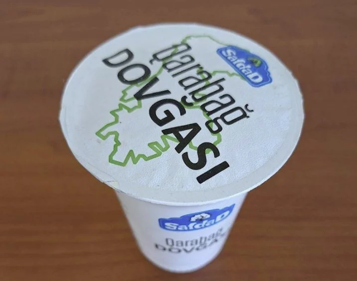 Azərbaycanda “Safdad” brendinə məxsus “Qarabağ” dovğası adlı məhsulunun üzərində keçmiş Dağlıq Qarbağ Muxtar Vilayətinin xəritəsinə oxşayan təsvir əks olunub.
