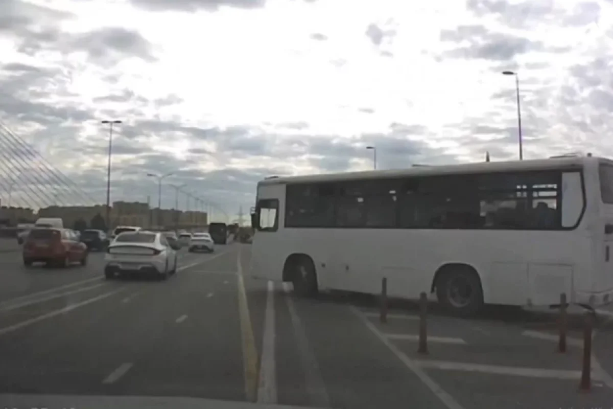 Səhər saatlarında Ziya Bünyadov prospektində avtobus sürücüsü yol hərəkəti qaydalarını kobud şəkildə pozaraq sərnişinlərin həyatını təhlükəyə atıb.