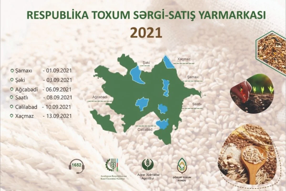 Kənd Təsərrüfatı Nazirliyi yanında Aqrar Xidmətlər Agentliyinin təşkilatçılığı ilə respublikanın müxtəlif regionlarında toxum sərgi-satış yarmarkaları keçiriləcək.