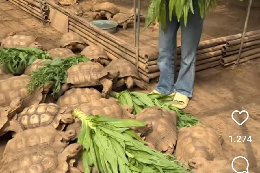 Sosial şəbəkələrdə gənc qadının tısbağaları yemləməsi marağa səbəb olub.